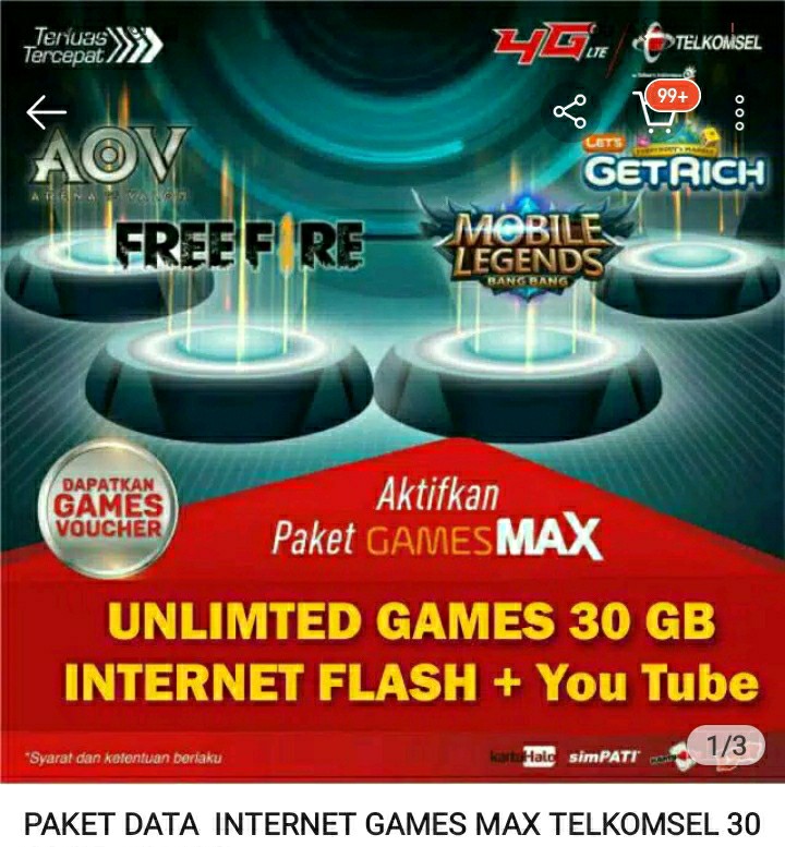 TELKOMSEL GAMEMAX Gamemax Freefire Gamemax Mobile Legends Tampilkan Semua SHOPEEPAY Saldo ShopeePay Tampilkan Semua. 2GB 15GB Ytb 30GB Free Fire 2GB 15GB Ytb 30GB Free Fire. Kuota standar 1GB all jaringan 2G3G4G 30GB kuota game 05GB YouTube bonus voucher game pilih salah satu Arena Of Valor AOV bonus 40 voucher gratis Free Fire bonus 50 diamonds gratis Mobile Legends bonus 56 diamonds gratis.