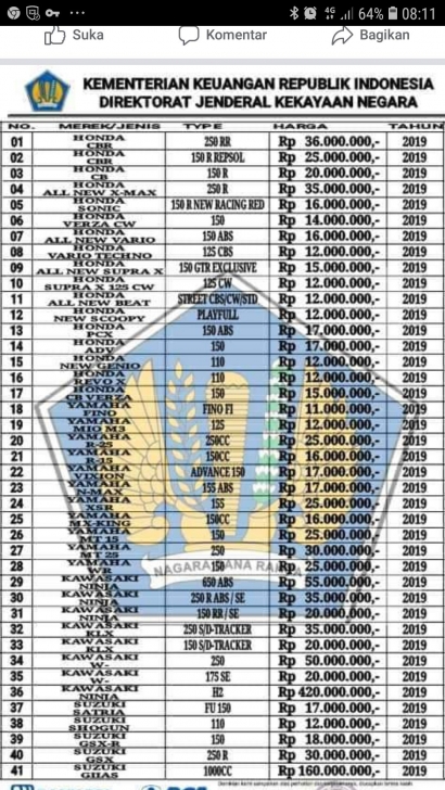 Di sana ditampilkan berbagai barang-barang yang akan dilelang termasuk barang gratifikasi yang dilaporkan ke Komisi Pemberantasan Korupsi. Mudah dan sederhana cara mengikuti lelang di Indonesia pastikan dan konfirmasikan informasi yang diterima kepada institusi resmi yang berwenang mengenai lelang dalam hal ini KPKNLDJKN sehingga tidak tertipu dengan tawaran harga murah suatu barang yang dijual secara lelang. MODUS PENIPUAN BERKEDOK LELANG KPKNL DENGAN HARGA MURAH.